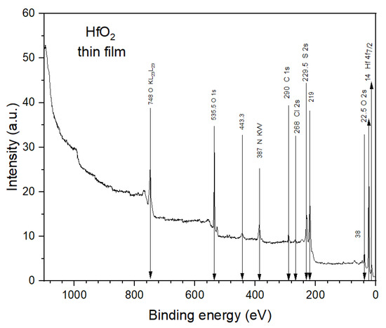 XPS characterization and X-ray photoelectron spectroscopy to show the materials in the substrate. In this case, HfO thin film is shown.