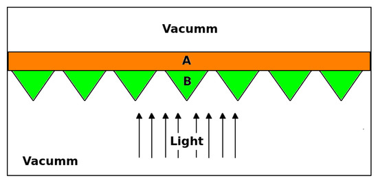 The combination of the materials between the flat film and the equilateral pyramids improves the reflection or decreases the emittance thanks to the triangular structure on the surface with optimal measures; however, there is one exception due to the absorption of “Si”, which is very low compared with other materials. A flat film of “Si” emits less without adding triangular structures on the top surface.