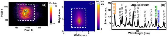 Figure 2a). The spectra- and time-integrated plasma images have also been captured by another CMOS camera since plasma imaging can be a simple but effective way for atomic/ionic line normalization. The plasma imaging signal was defined as the sum of the pixel counts in the rectangular area at the 1/10 level from the maximum amplitude (white dashed line in
