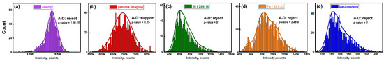 31]. According to the presented results, the only signal which follows the normal distribution was the plasma imaging signal (space, spectra and time integrated). All other signals were significantly biased from the Gaussian distributions (