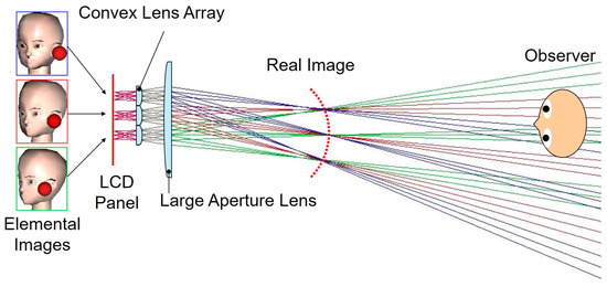 - Min, S.-W.; Javidi, B.; Lee, B. Enhanced Three-Dimensional Integral Imaging System by Use of Double Display Devices. Appl. Opt. 2003, 42, 4186–4195. [Google Scholar] [CrossRef]