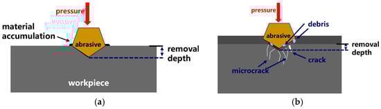 Brittle and plastic removal processes: (a) plastic removal and (b) brittle removal.