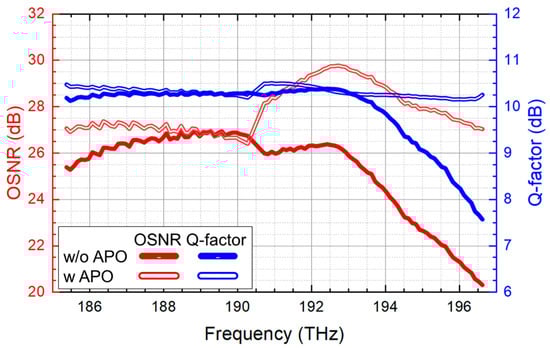 Performance comparison of the system with and without the APO algorithm in terms of the OSNR and Q-factor.