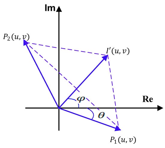 The input image can be decomposed into two random complex parts, and . Mathematically, the random modulus decomposition is described in Equations (19)–(21).