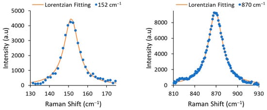 A zoom-in on the 152 cm−1 and 870 cm−1 modes and their Lorentzian fitting curves.