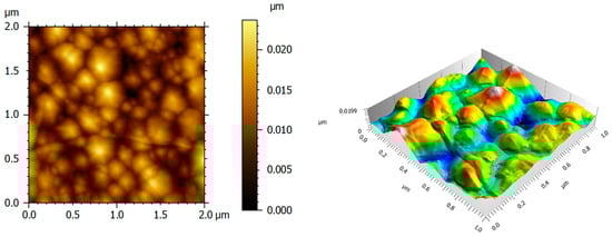 The surface topography of LiNbO3 films has been studied by AFM within the scanned area of 2 × 2 µm2 and 1 × 1 µm2, which is shown in Figure 6. The root mean square (rms) was obtained with a small value, equal to 2.0 nm.