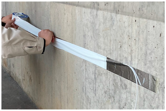 Along the interior of the rail beams, we installed monitoring fibers. The fibers were subjected to stretching to ensure tensioning and subsequently secured in place with robust adhesive tape, as illustrated in Figure 5.