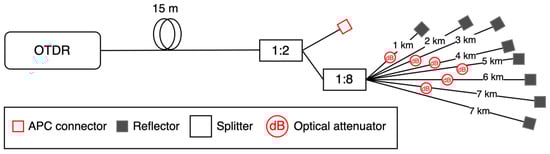 - Bentz, C.; Baudzus, L.; Krummrich, P. Signal to Noise Ratio (SNR) Enhancement Comparison of Impulse-, Coding- and Novel Linear-Frequency-Chirp-Based Optical Time Domain Reflectometry (OTDR) for Passive Optical Network (PON) Monitoring Based on Unique Combinations of Wavelength Selective Mirrors. Photonics 2014, 1, 33–46. [Google Scholar] [CrossRef]