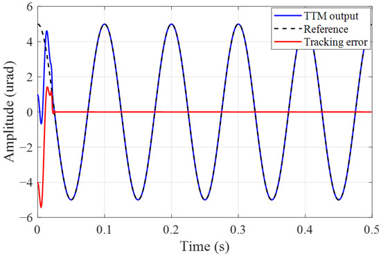 For the external reference signal, a sinusoidal signal with an amplitude of 5 urad is generated using model (3), and its system matrix can be expressed as