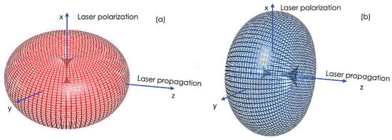 We study TS due to the laser’s linear polarization (X-axis); the emission of the fundamental peak is at its maximum along the perpendicular plane (YZ plane), as shown on the left side of Figure 2. The laser’s magnetic field induces radiation orthogonal to that, along the XY plane, as indicated on the right side of Figure 2. Relativistic effects from the fast-moving electrons distort these donut-shaped radiation spectra, as is well known in synchrotron radiation.