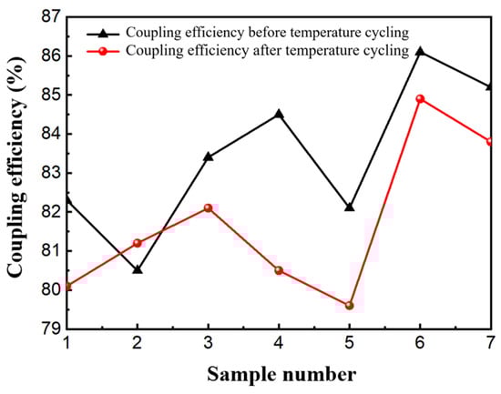 Schematic diagram of changes in coupling efficiency of different samples before and after temperature cycling.