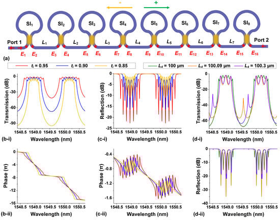 | Connecting waveguides | Structural Parameters (i = 1–6) | Length | Transmission factor | Phase shift |