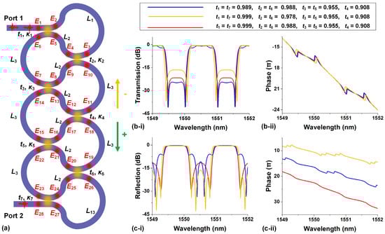 | Directional couplers | Structural parameters (i = 1–7) | Field transmission coefficient | Field cross coupling coefficient | |