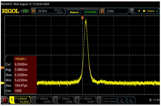 ) on the reduction ratio of the pulse timing jitter becomes smaller. It was also found in the experiment that, when the ratio of continuous pump power to threshold pump power exceeds 90%, it easily leads to false triggering of the pulses. Finally, with the continuous pump power fixed at 90% of the threshold pump power (~3.25 W), and under the condition of a pulse pump power of 40 W with a pump duration time of 7 µs, a remarkably low timing jitter of 14.568 ns was obtained, corresponding to an average pulse width of 5.99 ns.