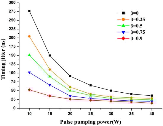 Figure 5 that, compared to single-pulse pumping, the composite pumping method can effectively reduce the output-pulse timing jitter, which is in accordance with our theoretical analysis. As the pulse pump power increases, the impact of the value of the continuous pump power (i.e., the value of