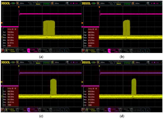 To characterize the dependence of a pulse timing jitter on the composite pumping parameters, we measured the pulse-to-pulse jitter by varying pulse pump powers and continuous power. In the experiment, the continuous pump power was set to 0%, 25%, 50%, 75%, and 90% of the threshold pump power (~3.6 W), respectively. The pulse pump power, at a repetition rate of 100 Hz, was increased from 10 W to 40 W with a step of 5 W. For a different pulse pump power, the pump pulse duration was adjusted to ensure that only a single pulse was generated in one pumping cycle. The pulse timing jitter was measured using a digital oscilloscope (Rigol, MSO5354, Suzhou, China), and a high-speed detector (EOT, ET3500, Irvine, CA, USA) defined as the standard deviation over 1000 recorded laser shots of the delay time between the leading edge of the pump pulse trigger signal and the leading edge of the emitted laser pulse. The experiment results featuring timing jitters with different composite pumping parameters were shown in