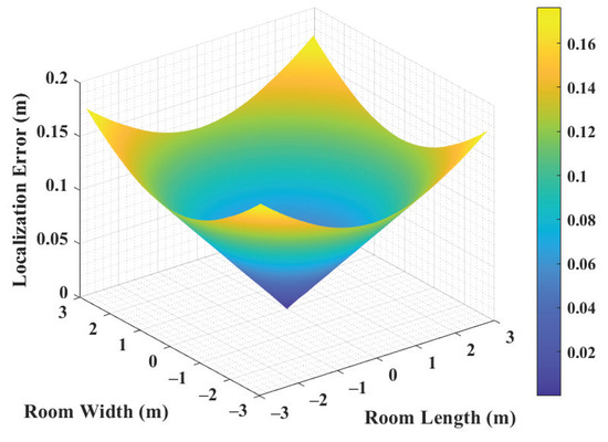 Localization errors at various positions throughout the room under the optimal order p of the FRFT.