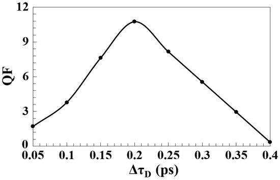 The relationship between QF and delay time (ΔτDI) in a NAND gate configuration utilizing an SOA followed by a DI is crucial for optimizing ultrafast optical computing performance. The SOA amplifies optical signals for rapid switching in logic operations, but without precise control over timing, achieving a high QF becomes challenging due to potential distortion. By tuning ΔτDI, we control the alignment and coherence of the signals, minimizing distortion and improving QF, as shown in Equation (8). ΔτDI of 0.2 ps ensures signal alignment, optimal energy storage, and reduced losses, broadening the SOA’s parameter flexibility (Figure 4). This careful tuning enhances performance, allowing for more efficient high-speed logic operations, and ultimately positioning the NAND gate as a reliable and efficient component for advanced optical computing systems. Fine-tuning the delay time in this configuration enhances the ultrafast capabilities of the NAND gate and enables the efficient integration of these logic gates into larger optical circuits and subsystems, pushing the boundaries of high-speed optical computing.