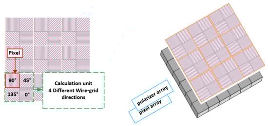 The polarization detector adopts a focal-plane polarization detector, as shown in the figure below. In front of the CMOS sensor, a combination of micro polarizers with micro- and nano-processing is set, so that the light intensity of different polarization directions can be obtained on each pixel of the CMOS. After reasonable polarization element arrangement and mathematical calculation, the Stokes parameter information of the target can be obtained.