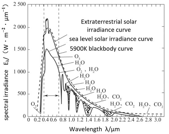 is the sea level solar irradiance, is the light transmittance of seawater, and the radiation spectral curve is shown in Figure 13.