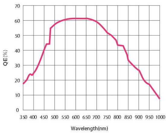represents the quantum efficiency of the area array detector. The quantum efficiency curve of the detector is shown in Figure 14: