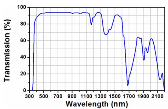 is the transmittance of the optical filter, and is the transmittance of the lens surface. The transmittance curves of the anti-reflection film on the designed lens at different wavelengths are shown in Figure 15. It can be seen from the figure that the designed optical lens has a good transmittance in the range of 410–900 nm, with ; represents the number of transmission surfaces in the optical system, with .