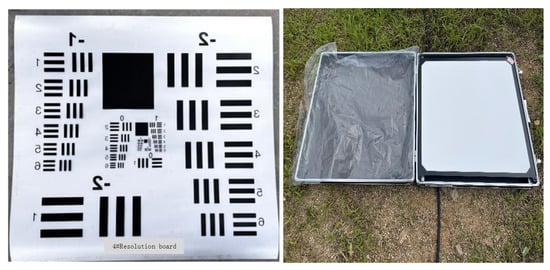 A resolution board was placed beside the pool to verify the spatial resolution of the polarization spectral imaging system. The resolution plate is shown in Figure 23: