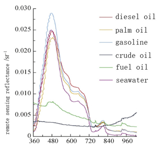 Remote sensing reflectance of typical oil types and seawater.