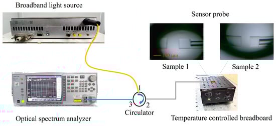 - Li, J.; Li, Z.; Yang, J.; Zhang, Y.; Ren, C. Microfiber Fabry-Perot interferometer used as a temperature sensor and an optical modulator. Opt. Laser Technol. 2020, 129, 106296. [Google Scholar] [CrossRef]
