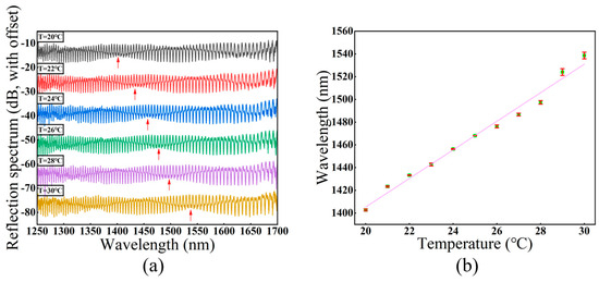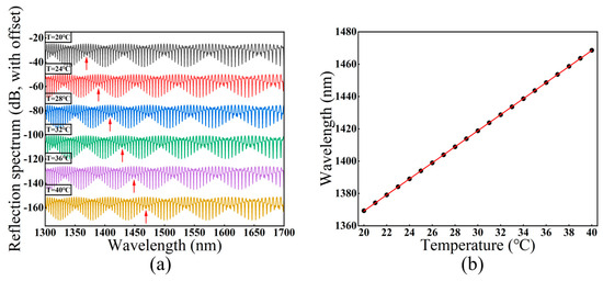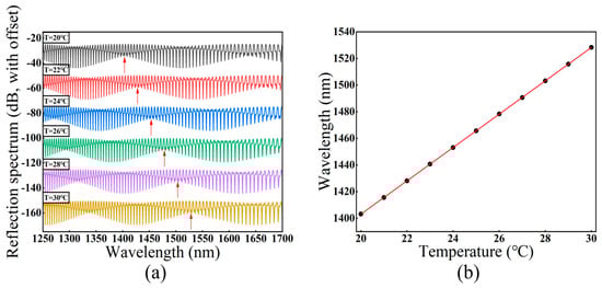 - Hou, L.; Xu, B.; Kang, J.; Zhao, C.; Jin, S. Sensitivity-enhanced Fabry-Perot filled with PDMS temperature sensor based on Vernier effect. In Proceedings of the Asia Communications and Photonics Conference, Hangzhou, China, 26–29 October 2018. [Google Scholar]