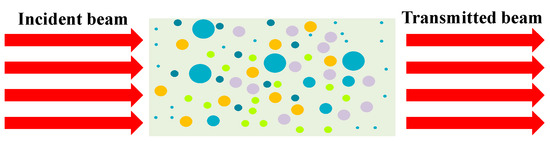 According to the Lambert–Beer law [17,18,19], when a parallel monochromatic beam passes through a homogeneous non−scattering sample, the absorbance is proportional to the concentration and thickness of the sample, as indicated in Figure 1.