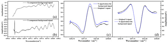 (a,b) The X− and Y−components background signal; (c,d) the X− and Y−components pre− and post−subtraction of the background signal.