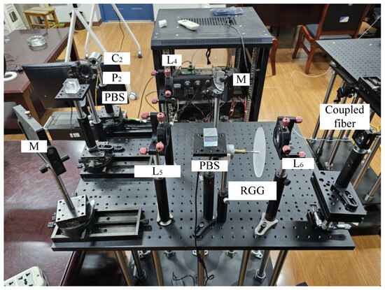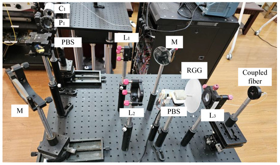 The size of the light spot projected onto the rotating ground glass sheet is adjusted using L1 and L2. Both the size of the light spot on the ground glass sheet and the roughness of the ground glass determine the size of δij. The process of creating ground glass involves gradually pulverizing regular glass using diamond sand, and the size of the diamond sand particles largely dictates the surface roughness of the glass. The coherence of the beam is not significantly affected by the ground glass’s rotational speed, according to research [20,21]. To construct the optical path for the local oscillator, the same process was used, As shown in Figure 7. The specific parameters of the experimental equipment are shown in Table 1.