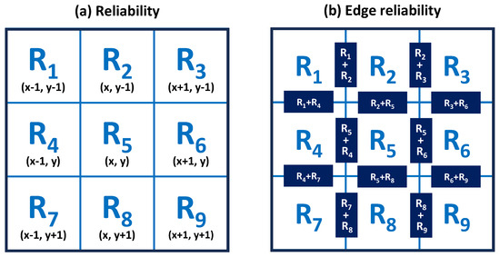 Overview of the calculation of QGPU. (a) shows the calculation of reliability and (b) shows the calculation of edge reliability.