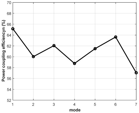 Figure 7 shows the optimal coupling power percentage values for the different proposed fiber modes. As can be seen, the fundamental mode has the highest power coupling efficiency.