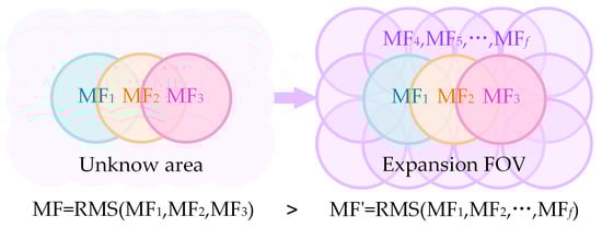- Set error sensitivity constraints. After the FOV expansion, recalculate the evaluation function value MF′ for all FOVs. Control the MF′ value of the newly added FOV to be lower than the threshold MF. This is the error sensitivity constraint condition.
