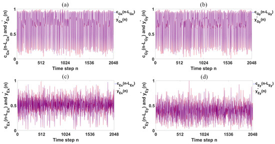 where the masked signals and are chaotic signals, as presented in [24]. is a scaling factor. The discrete channel delay lengths , = /h, and , = /h, where h is the step size, is the channel delay of the GS-PCx or ES-PCx, and is the channel delay of the GS-PCy or ES-PCy.
