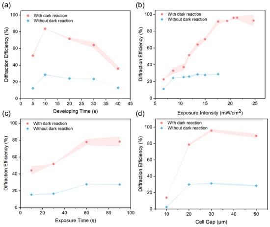 Bai, Z.; Cai, W.; Cheng, M.; Lan, S.; Kong, D.; Shen, J.; Cen, M.; Luo, D.; Chen, Y.; Liu, Y.J. The Diffraction Efficiency of Acrylate-Based Holographically Photopolymerized Gratings Enhanced by the Dark Reaction. Photonics 2024, 11, 320. https://doi.org/10.3390/photonics11040320