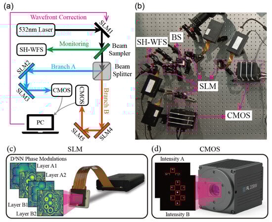 - Pan, X.; Zuo, H.; Bai, H.; Wu, Z.; Cui, X. Real-Time Wavefront Correction Using Diffractive Optical Networks. Opt. Express 2023, 31, 1067. [Google Scholar] [CrossRef] [PubMed]