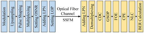- Ip, E. Nonlinear compensation using backpropagation for polarization-multiplexed transmission. IEEE J. Light. Technol. 2010, 28, 939–951. [Google Scholar] [CrossRef]