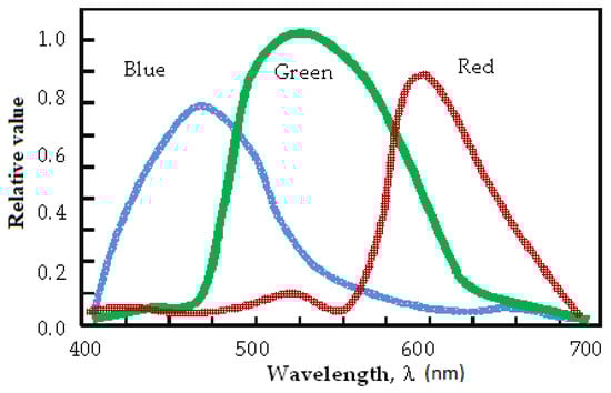 The transmission spectra of the R, G, and B pixels of an Android smartphone [15].