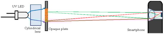 To measure the 3D excitation–emission spectra using a smartphone, we make use of the optical scheme in Figure 1b. The scheme allows two options: without a lens and with an additional lens. We first take a measurement without and then with a lens and make a comparison.