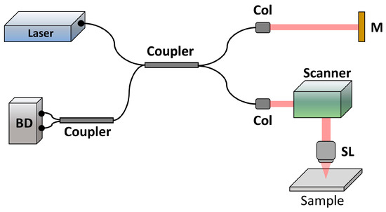 Setup of swept-source OCT for animal experiments. Col: collimator, M: mirror, SL: scan lens, and BD: balanced detector.
