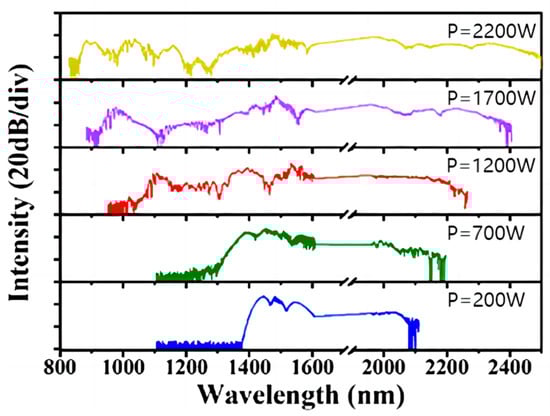 Experimental SC evolution with increasing pump powers. Reprinted with permission from [58].