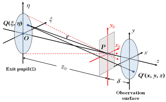 Assuming that a spherical wave undergoes diffraction through a circular exit pupil (coordinated in the ξ-η plane), it converges at point P (0, 0, z0), as illustrated in Figure 1. When observed in the x-y coordinate system on the observation plane located at a distance δ beyond point P, it results in defocusing. Here, δ represents the amount of defocus, typically where δ z0.