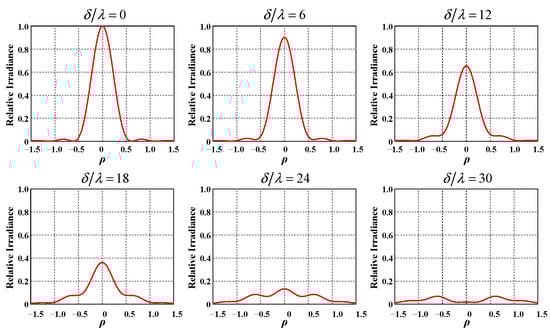 When δ = 0 (with no defocus), the intensity distribution (PSF) corresponding to Equation (8) is the Airy disk: