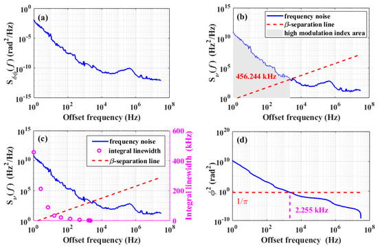 - Zhou, Q.; Qin, J.; Xie, W.; Liu, Z.; Tong, Y.; Dong, Y.; Hu, W. Dynamic frequency-noise spectrum measurement for a frequency-swept DFB laser with short-delayed self-heterodyne method. Opt. Express 2015, 23, 29245–29257. [Google Scholar] [CrossRef] [PubMed]