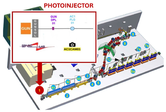 - Ferrario, M.; Alesini, D.; Anania, M.P.; Bacci, A.; Bellaveglia, M.; Bogdanov, O.; Boni, R.; Castellano, M.; Chiadroni, E.; Cianchi, A.; et al. SPARC_LAB present and future. Nucl. Instrum. Methods Phys. Res. B 2013, 309, 183–188. [Google Scholar] [CrossRef]