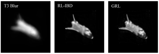 From the visual point of view, the recovery results of the GRL algorithm are more detailed compared with the RL-IBD results, referring to the diffraction limited images. The edge shapes of the T1 target antenna and body, the detailed textures of solar panel and connecting units of the T2 target, as well as the tail region shape and structure of the T3 target are more accurately recovered.