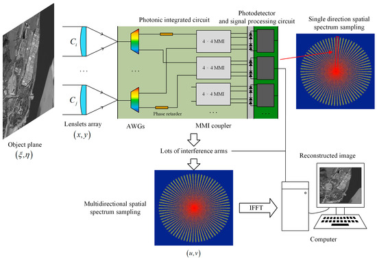 16] proposed a dense azimuthal sampling method along with a discrete spectral matrix reconstruction technique. This approach allows for continuous sampling of all integer multiples of the base frequency within the highest frequency range, including zero frequency, along the baseline direction. In 2018, Liu et al. initially proposed a design for an integrated interferometric imaging system based on compressed sensing [